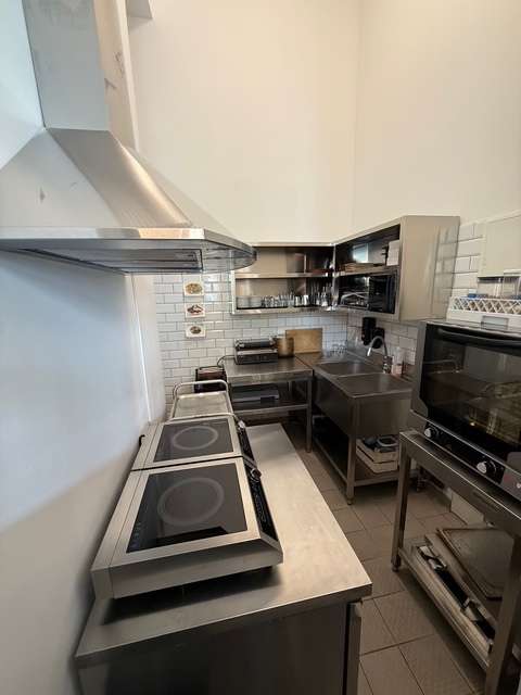 - Eine voll ausgestattete Einbauküche, die jeglichen Anforderungen eines professionellen Gastronomiebetriebs gerecht wird